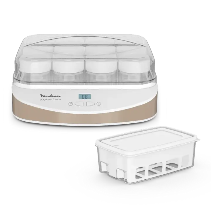 MOULINEX Yogurtera, 12 tarros de 200 ml, 1 L bandeja de queso fresco, fácil de usar y limpiar, tarrinas de vidrio reutilizables, sin aditivos, yogur natural, sinfín de sabores, función de apagado automático, YG233A10