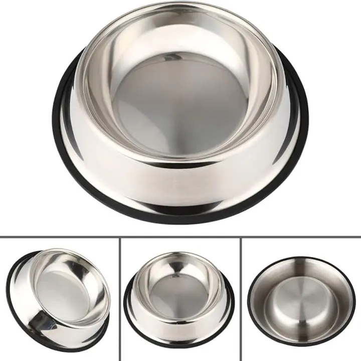 Tazón De Acero Inoxidable Para Mascotas 1 Pieza Antidesbordamiento Grueso Antideslizante Plata Fácil De Limpiar Para Gatos Y Perros Varios Estilos Y Tamaños Disponibles