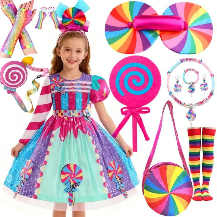 Vestido Arcoíris De Caramelo Para Niñas Con Manga Corta Y Asimétrico Disfraz De Carnaval De Purim Vestido Corto Y Largo Para Vacaciones De Navidad