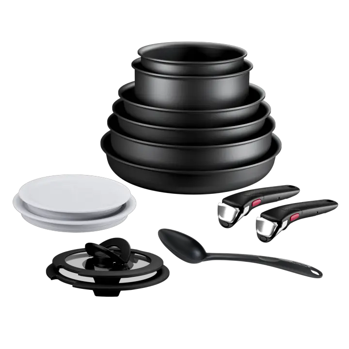 Tefal Ingenio Eco Resist, Sets de sartenes y cazos, Apilables, Revestimiento Antiadherente Seguro, Indicador de Temperatura, Inducción, Apto para Horno, Perfecto Dorado, Mango Desmontable seguro,