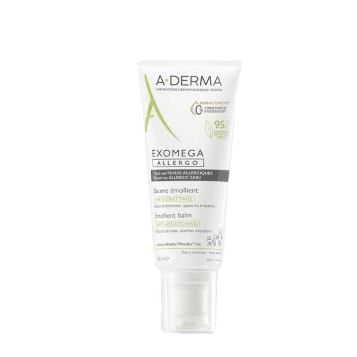 Aderma Exomega Allergo bálsamo emoliente anti-rascado es un bálsamo corporal (cara, cuerpo y párpados) que hidrata y calma la piel irritada y con picor. Reduce inmediatamente la sensación de picor y refuerza la barrera cutánea.