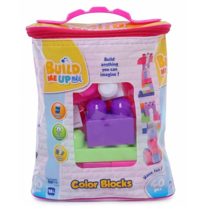 Mochila Rosa color Blocks con 40 bloques infantiles de construcción