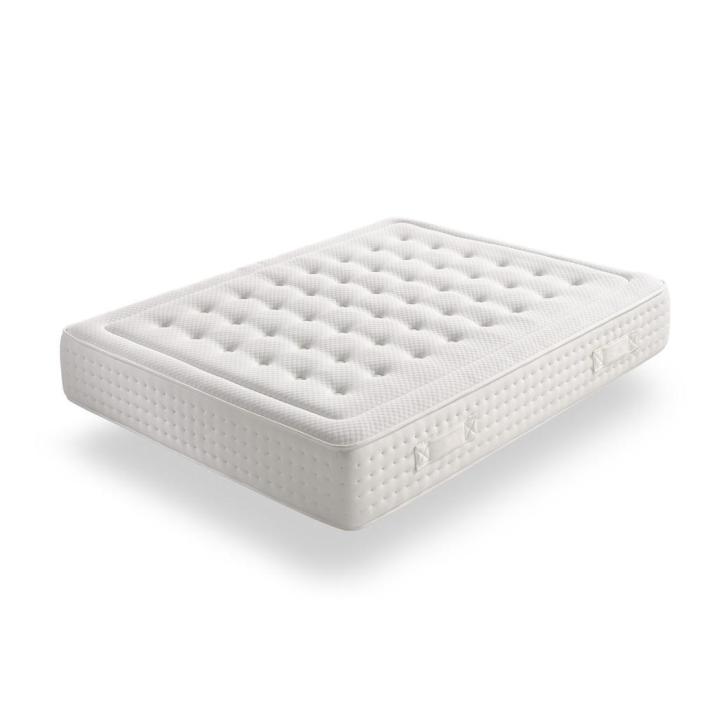 • Cara superior: Tejido Stretch Boston de gama alta, acolchado con 5 cm de viscoelástica con gel de alta calidad, capa Supersoft y fibra hipoalergénica para frescor y confort envolvente.