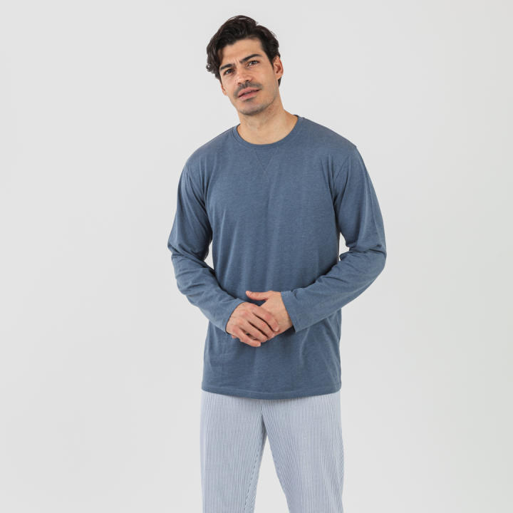 Pijama de hombre realizado en 100% algodón compuesto por camiseta de manga larga y pantalón largo.