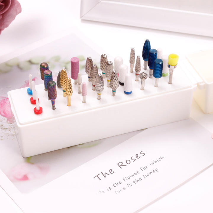 Caja de almacenamiento de cabezal de molienda de 30 ranuras, organizador de soporte de brocas de uñas y soporte de exhibición