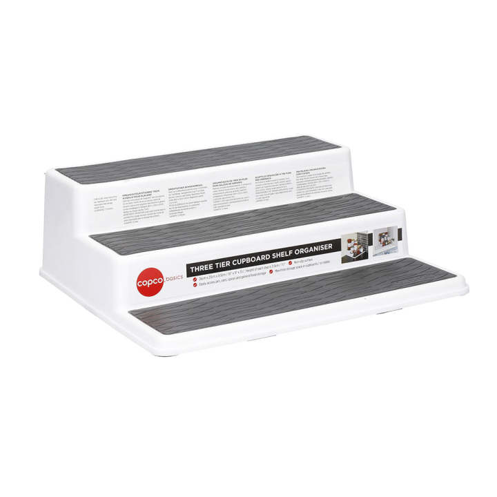 El Organizador para especias 3 niveles de KitchenCraft te ayudará a aprovechar y ganar espacio adicional en tus armarios de cocina y también en la encimera. Gracias a las tres alturas de este práctico estante de plástico resistente, tendrás a la vista todas tus latas, frascos y botes de especias, sin tener que mover nada.