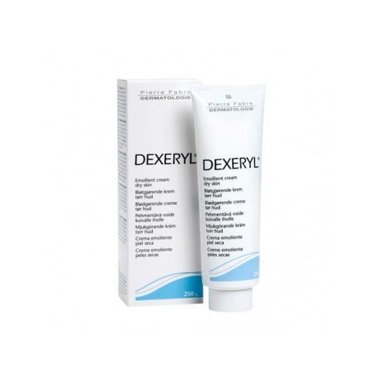 Dexeryl crema contiene vaselina, parafina y glicerol destinada a tratar afecciones dermatológicas que provocan sequedad cutánea. Tiene una acción sobre las lesiones dermatológicas como las placas secas, la pitiriasis alba, las quemaduras superficiales o las zonas escamosas encontradas particularmente en la psoriasis, la ictiosis o la dermatitis atópica.Puede ser aplicada sobre la superficie afectada varias veces al día.