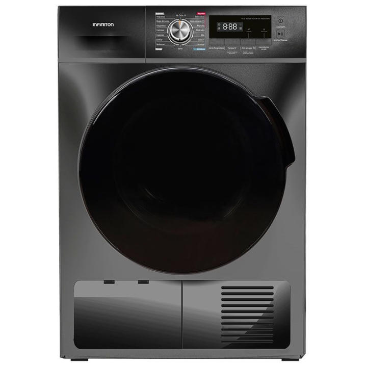La secadora de carga frontal modelo SD-DG85C de la marca Infiniton cuenta con una capacidad de 8kg y su consumo energético es de 4.73kWh/24h. No te resultará nada molesta durante su funcionamiento gracias a que cuenta con un nivel sonoro de 69dB. Viene con 16 programas que se adaptarán a la perfección secando cada una de tus prendas con mimo y cuidado. Además, para facilitarte la hora de la colada cuenta con inicio diferido y función antiarrugas. Esta secadora cuenta con tecnología de secado por condensación.