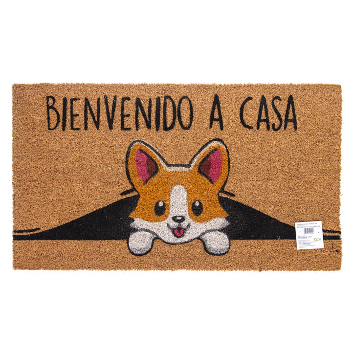 Dale una divertida bienvenida a tus invitados, y salúdalos con este lindo perrito, con este felpudo de coco y base antideslizante de PVC,