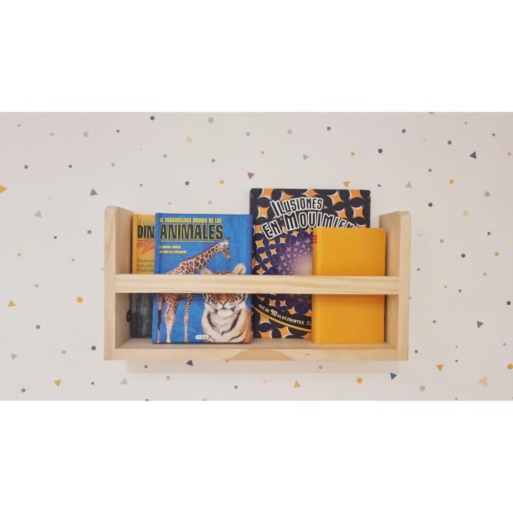 - Librería/estantería infantil de 100 % madera natural de pino, fabricada de forma artesanal.