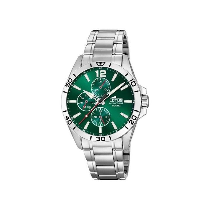 La combinación de la esfera verde y el acero plateado en este reloj Lotus crea una estética elegante que no pasa desapercibida, elevando cualquier conjunto. Esta paleta de colores, clásica y moderna a la vez, permite que el reloj se adapte con facilidad a diversos estilos y ocasiones. La esfera verde, con sus tonos profundos, aporta un toque de distinción que contrasta magníficamente con el brillo del acero inoxidable.