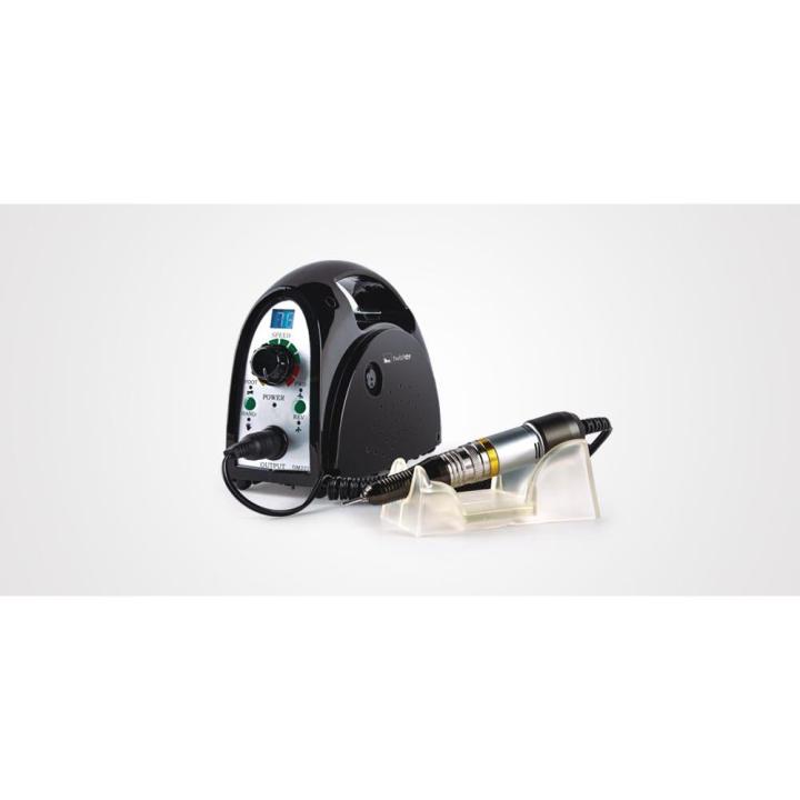 Silencioso y cómodo, ofrece un alto rendimiento y precisión. Su agarre confortable, interruptor de giro (derecha e izquierda), pantalla LCD con regulador de velocidad de 0 a 35.000 rpm, hacen que el trabajo sea más rápido y cómodo para el profesional. Es compatible con cualquier tipo de fresa estándar.