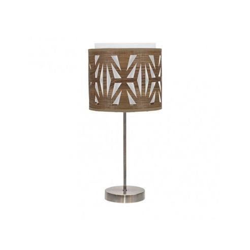 Sobremesa BAJO serie KATERINA en color CUERO/MADERA OSCURA. Realizado en metal y textil, se caracteriza por el diseño moderno del dibujo que crea su pantalla calada, resultando una bonita composición para decorar e iluminar cualquier estancia del hogar o lugar de trabajo. Posee un portalámparas E14. Bombilla no incluida. Tiene una dimensión de 42x17x17 centímetros. En esta misma serie podemos encontrar los colgantes de 60, 50, 40 y 30 centímetros de diámetro, un pie de salón y dos modelos de sobremesa. Todos también disponible en las combinaciones de colores madera clara, madera oscura, madera gris y madera negra.