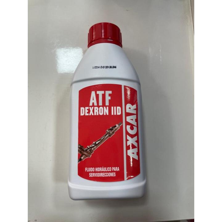 Líquido hidráulico para dirección asistida, transmisiones y servomecanismos. Marca Axcar. Cumple normativa ATF Dexron IID. Color rojo (para la mayoría de vehículos actuales) Envase unitario 500ml