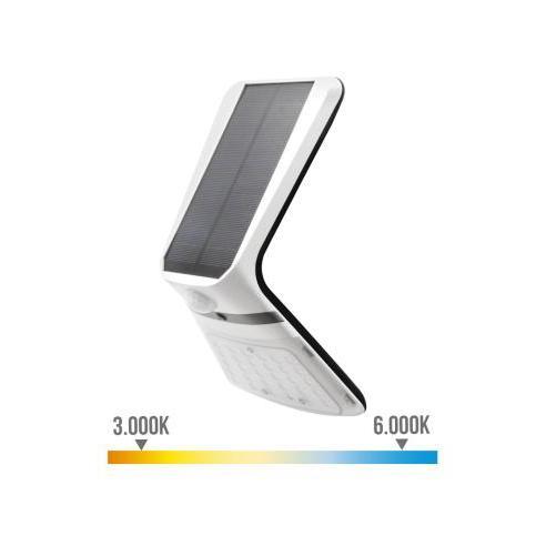 El Aplique Solar EDM ofrece dos tonalidades de luz: 6000K (luz fría) para la luz frontal y 3000K (luz cálida) para la luz posterior, permitiéndote crear el ambiente perfecto en cualquier momento. Su batería recargable de 3,7V/2300mAh garantiza un funcionamiento eficiente, con encendido automático durante la noche y apagado durante el día.