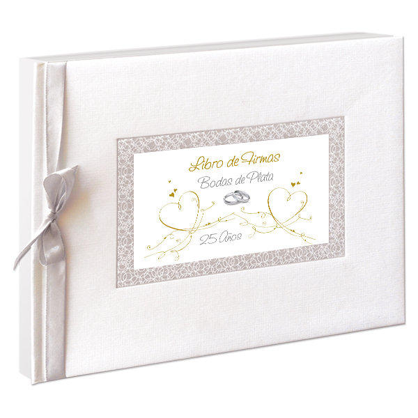 Destacamos las siguientes características de nuestro LIBRO DE FIRMAS BODAS PLATA CORAZONES:
