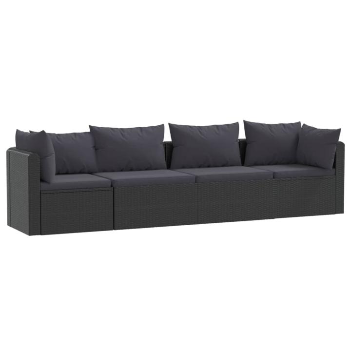 Disfruta de tu tiempo al aire libre con nuestro elegante juego de sofás de ratán sintético. Este conjunto de sofás se integra perfectamente en patios, jardines, espacios junto a la piscina, etc. Construido a partir de ratán PE duradero tejido a mano sobre una estructura acero con recubrimiento en polvo, este conjunto de sofás es fuerte, robusto y resistente a la intemperie. Gracias al ratán PE para todo tipo de climas, es fácil de limpiar, firme y adecuado para el uso diario. Los amplios reposabrazos y los gruesos cojines acolchados de asiento y de respaldo brindan la máxima comodidad al sentarte. Los niveladores ajustables aseguran la estabilidad en superficies irregulares. La entrega incluye 2 sofás de esquina, 2 sofás centrales, 4 cojines de asiento y 4 cojines de respaldo. Nota: Recomendamos cubrir el conjunto de ratán si llueve, nieva o hiela.