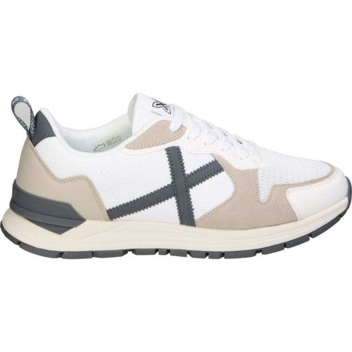 - Diseño Moderno y Elegante: Las zapatillas Munich Avenue 11 presentan un diseño estilizado en color blanco con detalles en beige y negro, ideales para cualquier ocasión casual.