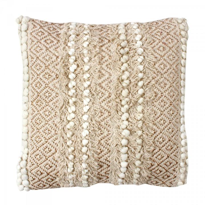 Cojín en forma cuadrada con relleno, perfecto para una cuidada decoración con un auténtico estilo Bohemio en tonos de color natural.