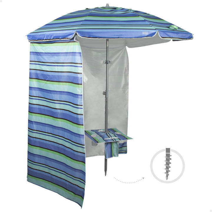 Aktive Sombrilla playa antiviento 210 cm rayas azules con pared y mesa