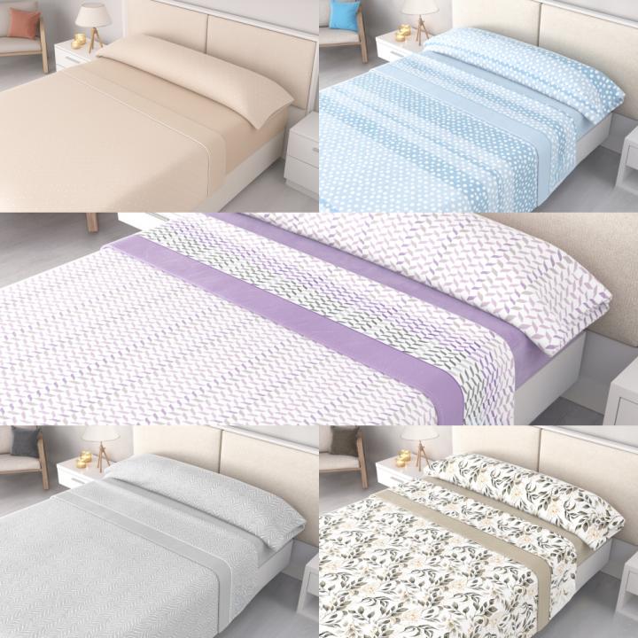 Incluye sábana bajera ajustable compatible con colchones de hasta 30 cm de alto y 200 cm de largo. Se adapta perfectamente sin moverse ni formar arrugas, incluso en colchones altos. El set está disponible en varias medidas para camas individuales y dobles.