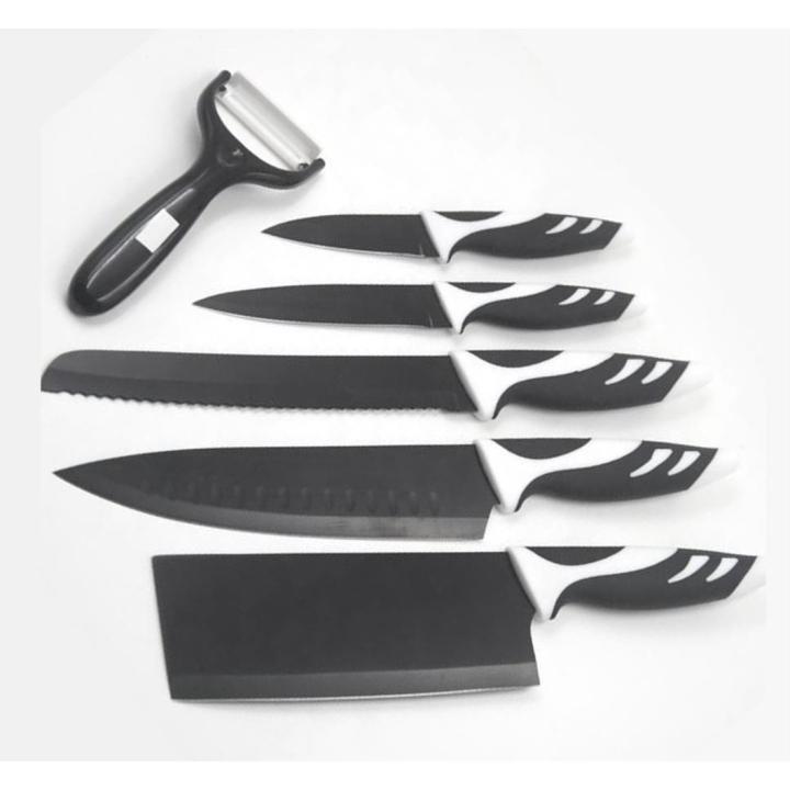 🔪⚫ Set de 5 Cuchillos y Pelador LoLek: