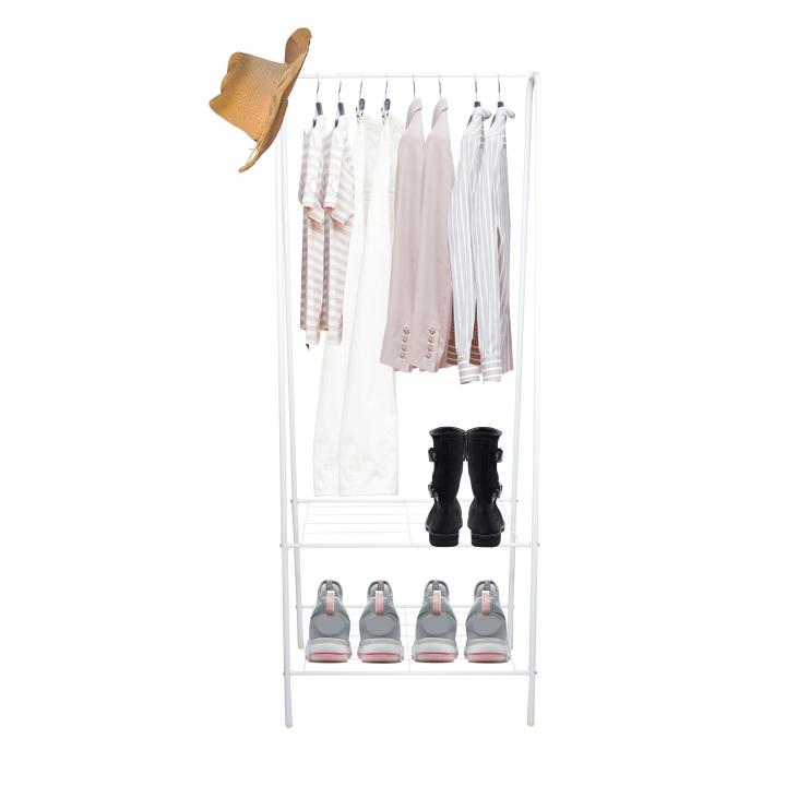 - Con 2 niveles de almacenamiento: Los estantes de los 2 niveles pueden almacenar ropa doblada, accesorios, edredones, cajas de almacenamiento, zapatos, etc. La barra para colgar superior puede colgar prendas y abrigos. El perchero proporciona suficiente espacio de almacenamiento para satisfacer tus necesidades.
