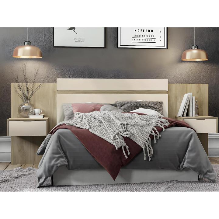 El cabecero PARATI está equipado con práctica mesa de noche a cada lado y es extensible para adaptarse a camas de 140 o 160 cm... ¡El cabecero ideal para ahorrar espacio y darle un toque moderno a tu dormitorio!