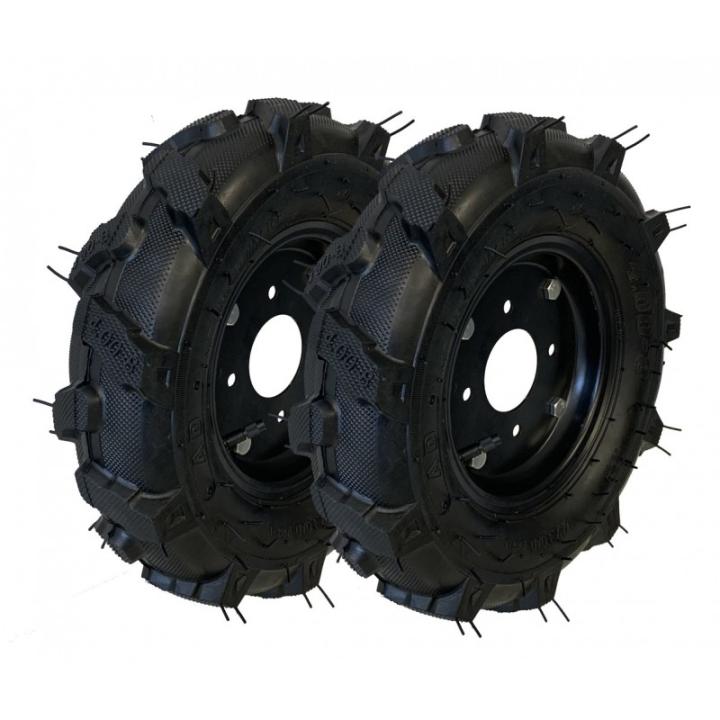 Juego de ruedas neumáticas de 400 x 8 adaptable a todos los modelos de motoazada. Nuestro Juego de Ruedas Neumáticas de 400 x 8 es una adición esencial para tu equipo, permitiéndote desplazarte con facilidad en diversos terrenos. Estas ruedas están fabricadas con materiales de alta calidad y resistencia, lo que las hace ideales para soportar cargas pesadas y enfrentar terrenos desafiantes.