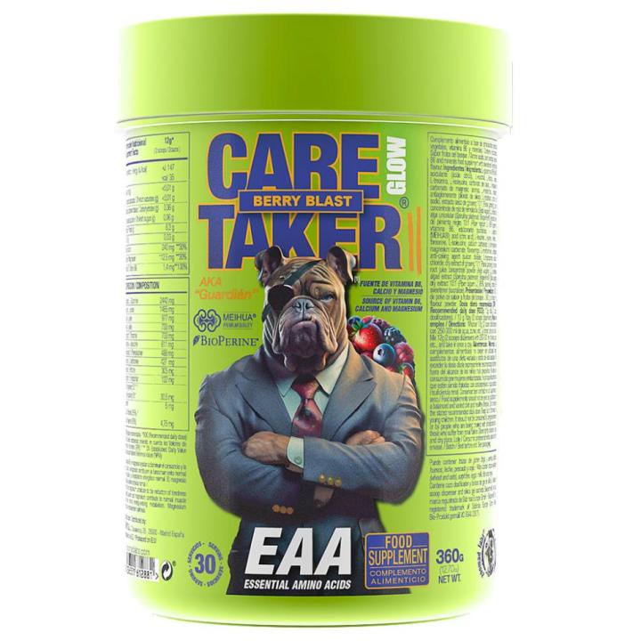 CARETAKER GLOW EAAs, “el guardián” de tu musculatura y tu aliado en la oscuridad. Nuestro bulldog GLOW no es solo una guapada visual en tu mesita de noche, sino una formula de aminoácidos esenciales y glutamina, diseñado para custodiar y potenciar tu recuperación y crecimiento muscular a cualquier hora.