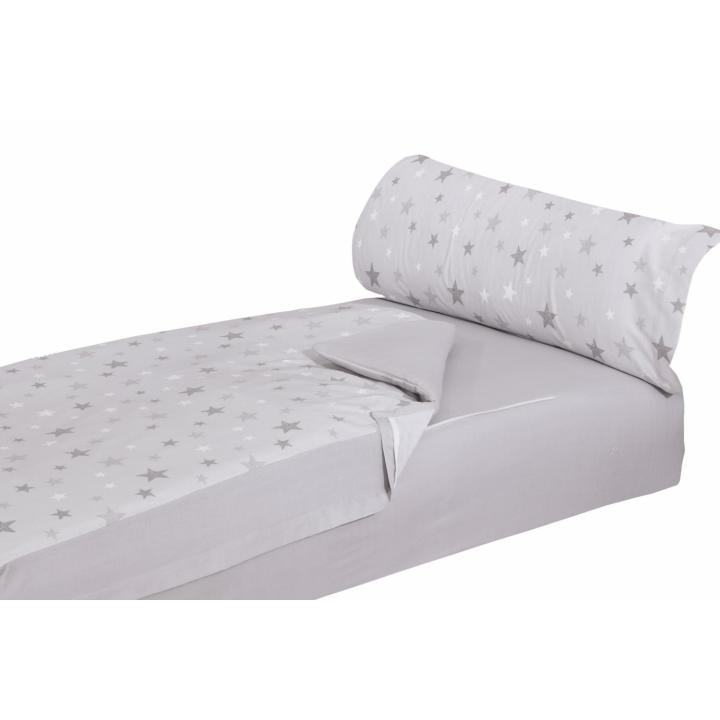 Conjunto de tres prendas. El saco nórdico contiene un fuelle para la mayor comodidad del niño, la almohada y la bajera ajustable unida al saco mediante cremallera. Tres prendas en una que pueden lavarse cómodamente por separado.
