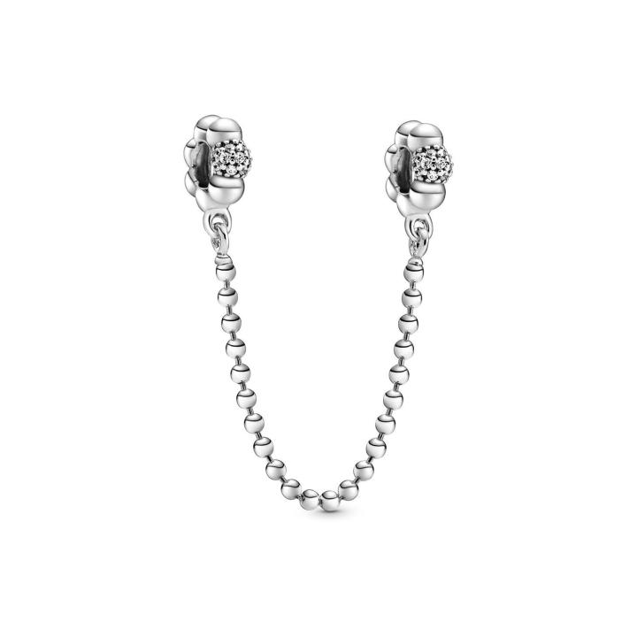 Cadena de seguridad Pandora Esferas y pavé 798680C01 hecha en plata de primera ley y circonitas cúbicas transparentes. Se envía en 24 horas en días laborables
