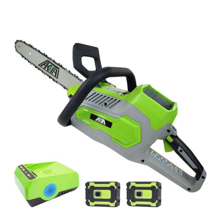 Motosierra de Batería de 60v, ultima tecnología tanto en baterías como en motor y control de trabajo. Ofrecen una potencia y un rendimiento similar a los de gasolina. La motosierra a batería de Akita es perfecta para los trabajos de Corte gracias su alto rendimiento y además a su fácil manejo debido a su peso reducido.