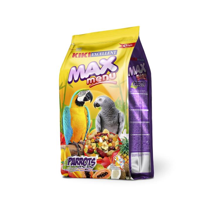 Alimento completo extra para loros y cotorras. Los loros y guacamayos son aves que pertenecen a la familia de las psitácidas, caracterizadas por una larga longevidad y mucha inteligencia. Sin embargo esa misma inteligencia puede provocarles pautas de conducta impropias de su especie en estado libre. Para evitar estas situaciones, resulta imprescindible interactuar con estas aves, jugando y manteniendolas enla medida d elo posible con una cierta actividad. Esta estrategia nunca será válida sino va a compañada de una nutrición equilibrada y que aporte todos los elementos esenciales tales como vitaminas, aminoácidos y minerales KIKI MAX MENÚ Loros aporta todos los nutrientes esenciales en una mezcla de semillas equilibrada que mantiene el apetito y la atención siempre sobre ella. Viene envasada en atmósfera controlada. Ingredientes: frutas deshidratadas (piña, papaya, plátano y pasas, guindillla extra, algarroba troceada, extrusionado de cereales, extrusionado de frutas, cacahuetes, alazor extra grande, pipa gigante rallada, pipa iregi rallada, pipa albina, sorgo rojo, dari extrablanco, cañamones, trigo duro extra, maiz cribs, soja verde y pipas de calabaza. Análisis:-