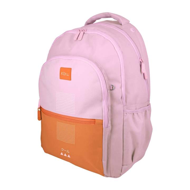 Además de los tres apartados principales, cuenta con un bolsillo frontal y dos bolsillos laterales con goma elástica. En el interior del compartimento frontal, dispone de una anilla para poder colgar las llaves y tenerlas siempre a mano, 3 espacios para bolígrafos y un bolsillo de malla pequeño con cierre de cremallera.