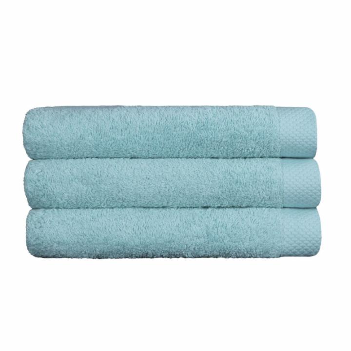 Toalla de 585 gr. de algodón 100%, muy esponjosa, caracterizada por su suavidad natural ya que no se utilizan suavizantes en su producción lo que ofrece una alta absorción desde el primer uso.