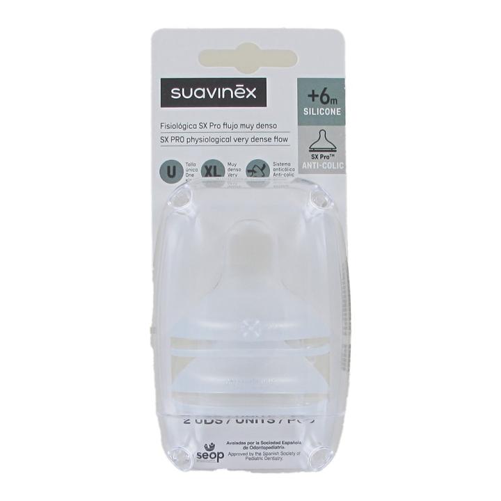 Suavinex tetina fisiológica SX Pro XL consigue que la lengua se mantenga en la misma posición fisiológica / natural que cuando el bebé mama del pecho.