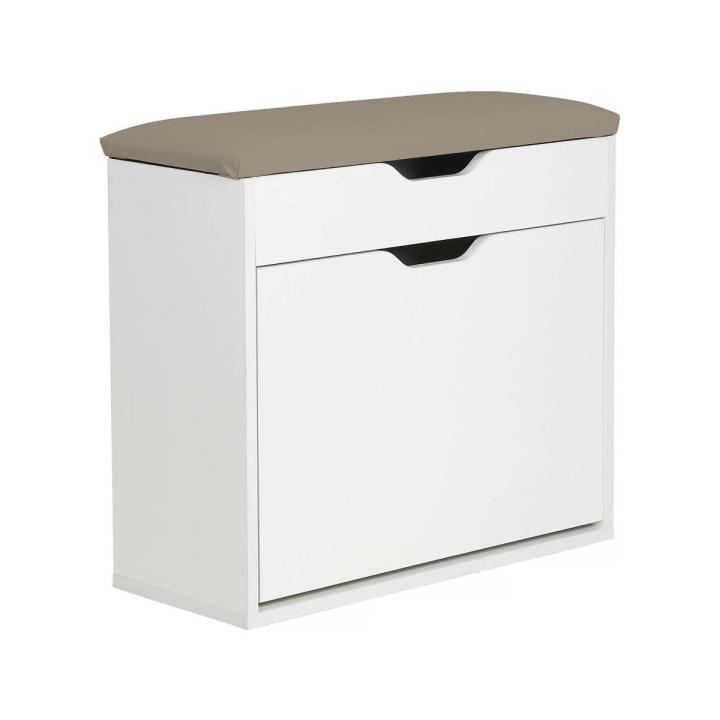 Mueble zapatero "Wade Con su diseño moderno y elegante, el zapatero "Wade" es un mueble discreto y práctico. Es la solución de almacenaje ideal para todos sus zapatos.El estilo minimalista de este banco de almacenaje encajará perfectamente en su interior, ya sea en su recibidor, pasillo, salón o dormitorio.Puede acceder a sus zapatos por la parte superior e inferior. Este mueble zapatero "Wade" no sólo facilita el acceso a sus zapatos, sino que también le ofrece más espacio y combinaciones creativas...Mueble zapatero "Wade" - 68 x 60 x 24 cm - PVC + Espuma + Tablero de partículas - Blanco .Materia: Tablero de partículas
