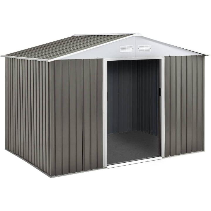Gracias a su función corredera, esta puerta doble se abre fácilmente, sea cual sea el espacio que tenga delante. : Auténtico espacio de almacenamiento, el cobertizo de jardín metálico "Dallas" de alta calidad ofrece numerosas ventajas. Le resultará tan útil en verano como en invierno, y podrá guardar herramientas o muebles de jardín (cortacésped, bricolaje, madera, bicicletas, juguetes para niños, pintura, etc.). Su diseño y su color se integrarán perfectamente en la decoración de su jardín, sea cual sea el clima.