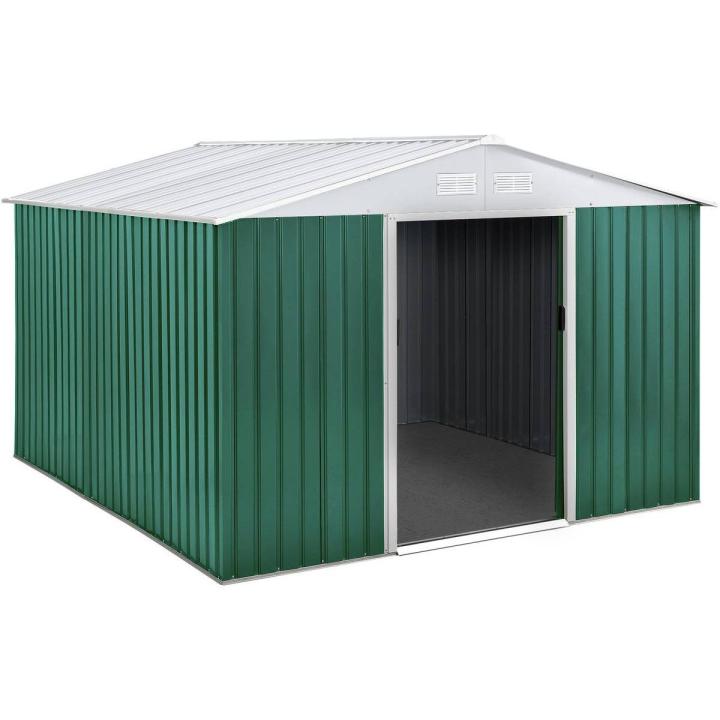 La caseta de jardín perfectaMÁS ESPACIOLa caseta de jardín Rosas es la solución ideal para todas sus necesidades de almacenamiento.Colocado en su jardín, este cobertizo le permite guardar su material de exterior, su cortacésped, sus muebles de jardín, sus herramientas de bricolaje, pero también las bicicletas de sus hijos o su material de camping. ACERO GALVANIZADOPara un uso prolongado y en las mejores condiciones, esta caseta de jardín tiene una estructura reforzada de acero galvanizado.La galvanización ofrece una protección muy eficaz contra los elementos.Es resistente a la corrosión, los rayos UV, la abrasión, la erosión, etc.Este cobertizo ha sido totalmente diseñado para ofrecerle un espacio de almacenamiento exterior fiable y eficaz. VENTILACIÓN ÓPTIMAPara evitar los malos olores y la degradación de sus enseres, la caseta de jardín metálica Rosas está equipada con 4 rejillas de ventilación.Estas rejillas garantizan una renovación constante del aire en el interior de la nave. UN PRÁCTICO SISTEMA DE APERTURAEl cobertizo de jardín Rosas también tiene una apertura de doble puerta.La ventaja de esta puerta es su sistema de deslizamiento.Así podrá optimizar el espacio tanto en jardines grandes como pequeños.Gracias a su función corredera, esta puerta doble puede abrirse fácilmente, independientemente del espacio que ocupe en la parte delantera.Caseta de metal para jardín color verde y blanco - Dimensiones de punta a punta: 2,55 x 2,77 x 2,02 - Kit de anclaje para concreto incluido. .Descripción: La caseta de metal para jardín Rosas es de muy buena calidad y le ofrece numerosas ventajas. Le sera útil tanto en verano como en invierno y le permitira almacenar herramientas o mobiliario de jardín (podadora, herramientas de bricolaje, madera, bicicletas, juegos para niños, pintura...) Su diseño y su color se adaptara perfectamente a la decoración del jardín. Se integrará perfectamente a la decoración de su hogar y de su jardín.