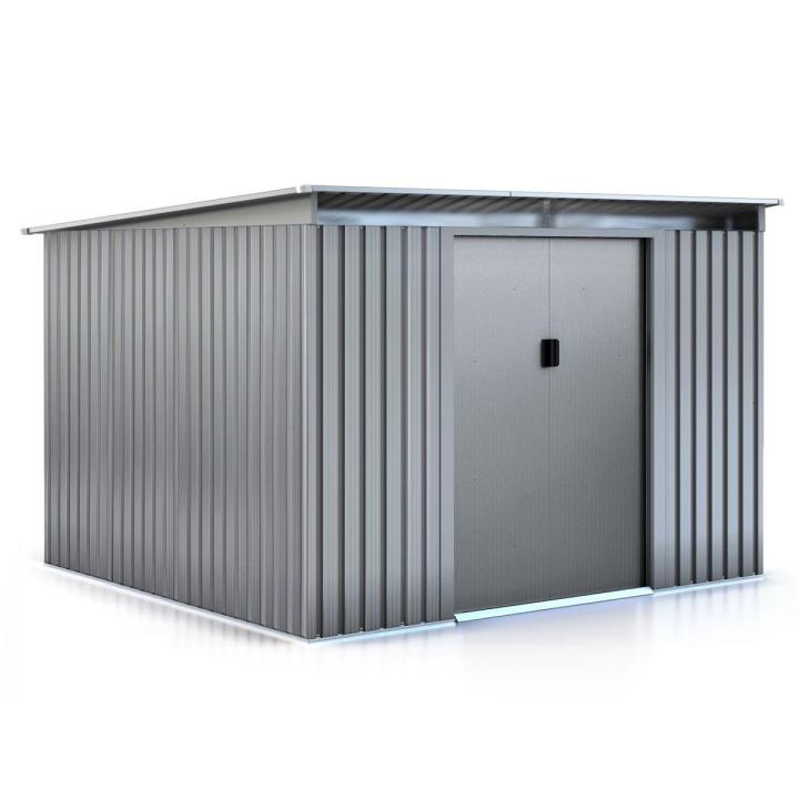 Caseta de jardín de metal "Texas" - 6,29 m²Mantenga sus cosas segurasAcero reforzadoConstruido con acero galvanizado, el cobertizo de jardín Texas está hecho para soportar los daños causados por el entorno natural en el que se utiliza.La galvanización del acero proporciona a esta caseta una protección reforzada contra la abrasión.Tratamiento óptimo y completoLa caseta de jardín Texas está diseñada para su uso en exteriores.La estructura está totalmente protegida contra los rayos ultravioleta del sol para que conserve su color original durante el mayor tiempo posible.Esta caseta de jardín también está protegida contra la corrosión.Cobertizo polivalenteUna caseta de jardín es fácil y sencilla de utilizar en el jardín.Una vez montado, puede utilizarlo para guardar sus herramientas, el cortacésped o cualquier otro equipo de jardinería.Además, puedes guardar ciertos muebles de jardín bajo una cubierta protectora. No dude en guardar sus pertenencias a cubierto, especialmente en caso de lluvia.La caseta de jardín le ofrece un espacio de almacenamiento ideal y seguro en su jardín.Caseta de jardín de acero galvanizado - 2,41 x 2,61 m - Tratamiento antioxidante y anti UV - Puerta corredera doble - Trastero de jardín - Gris .Descripción: - Caseta de jardín de acero galvanizado - Travesaño de policarbonato con alero - Apertura de puerta corredera doble con tirador - Sin base / cimentación - Dimensiones totales: 2,41 x 2,61 m - Espesor de la estructura: 0,5-0,8 mm - Tratamiento anti-UV y antioxidante. - Disponible en varios tamaños