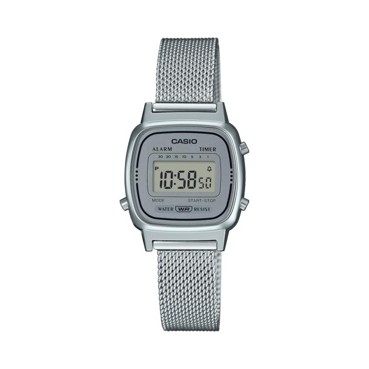 Reloj digital marca Casio colección Vintage. Modelo LA670WEM-7EF. Mini Collection. Se trata de un reloj digital con caja cuadrada fabricada en resina cromada.