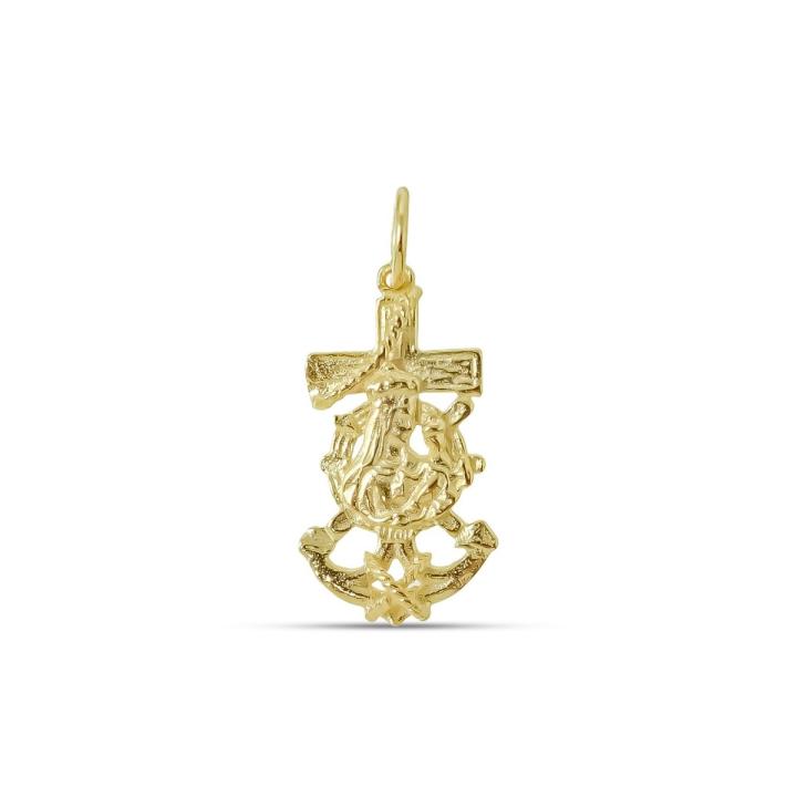 El colgante Cruz Marinera con la Virgen del Carmen, fabricado en Plata de Ley 925m chapada en oro, es una joya de 26 mm de gran simbolismo y devoción. Esta pieza está inspirada en la tradición marítima, donde la Virgen del Carmen es considerada la patrona y protectora de los marineros. La Cruz Marinera representa la fe y la guía divina en el mar, convirtiéndola en un amuleto perfecto para aquellos que buscan protección y bendición.