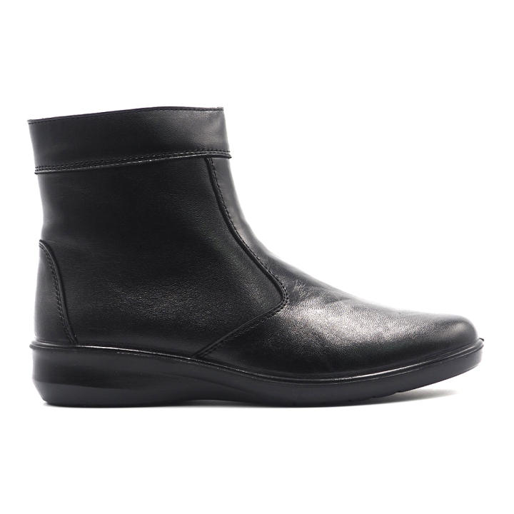 Botín de piel, de fabricación “cosido guante”, que se adapta perfectamente al pie, sin costuras ni incomodos relieves. Su caña tiene un agradable acolchado interior, al igual que en el talón, para ofrecer máximo confort. La suela es de poliuretano, directamente inyectada sobre el zapato, anatómica y muy flexible. Su sistema de cierre es mediante cremallera. Es un calzado ideal para trabajar y aguantar largas horas en pie.