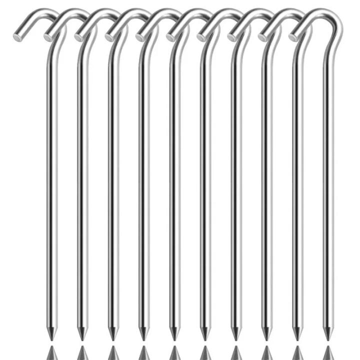 Cada paquete contiene 10 estacas, lo que garantiza que tengas suficientes para varias tiendas de campaña o configuraciones grandes.