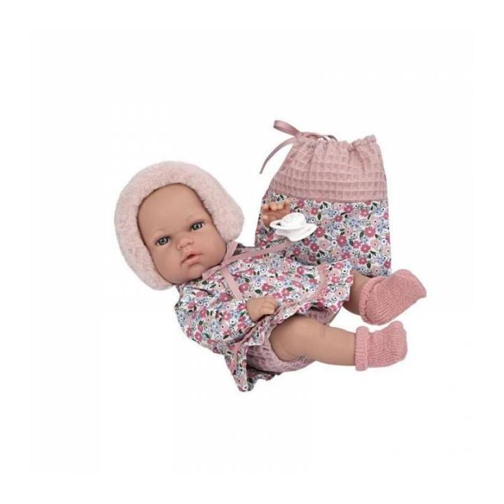 Su vestido de tonos rosa y estampado floral te encantará. Incluye como accesorios una bolsa multiusos y un chupete.