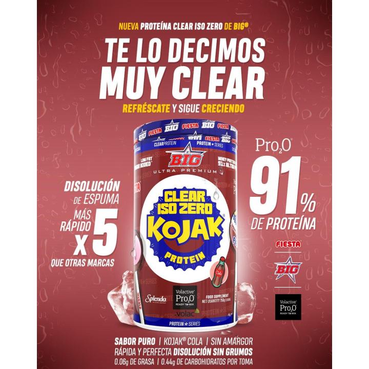 Descubre la nueva Big Proteína Clear Iso Zero KOJAK Original, una proteína de suero premium con un sabor increíble inspirado en el icónico caramelo KOJAK®. Esta fórmula de alta pureza ofrece una opción sin lactosa, baja en grasas y carbohidratos, ideal para quienes buscan optimizar su nutrición sin renunciar al sabor.