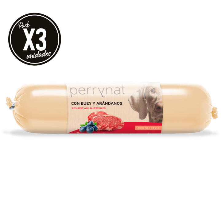 • COMPOSICIÓN: Pollo fresco 44%, cerdo fresco 28%, maíz, buey fresco 4%, arándanos frescos 4% y sustancias minerales.