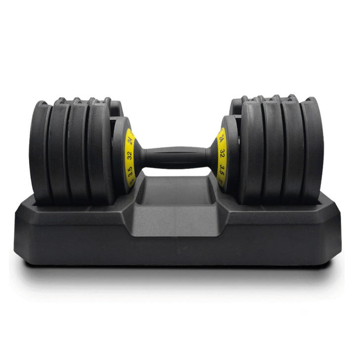 - Diseño compacto y funcional: cambia de peso en segundos sin necesidad de ocupar espacio con múltiples mancuernas.