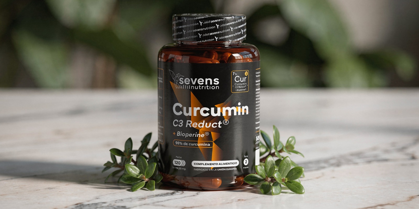 Curcumin C3 Reduct® + BioPerine® de Sevens Nutrition es una fórmula avanzada que combina ingredientes de alta calidad para complementar tu rutina diaria de bienestar: